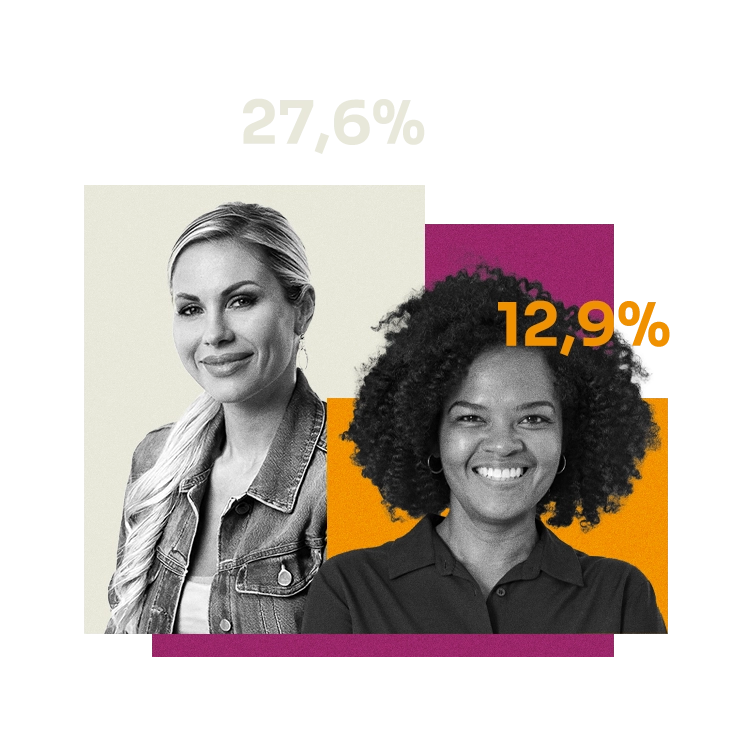 EscolaridadeA diferença na proporção entre docentes negros e brancos nas instituições públicas de educação superior foi de 28 pontos percentuais (pp) em 2012 e de 27,6 pp em 2019, não apresentando mudança no período.