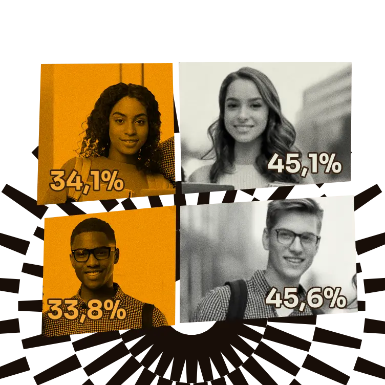 EscolaridadeNas graduações presenciais em Pedagogia nas instituições públicas em 2014, a proporção de negros era 9,6 pontos percentuais (pp) maior que a de brancos. Já em 2019, essa diferença passou para 21,5 pp. Nas instituições privadas, a proporção de negros era 1,7 pp maior que a de brancos em 2014, passando para 5,2 pp em 2019.