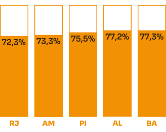 EscolaridadeEm 2012, 42,3% dos jovens negros e 25,5% dos brancos de 15 a 19 anos eram sem instrução ou tinham Ensino Fundamental incompleto. Em 2023, negros eram 22,6% e brancos 13,9%, reduzindo significativamente a diferença de 16,8 para 8,7 pontos percentuais entre 2012 e 2023. Apesar do avanço, era expressivo o percentual de jovens, sobretudo negros, com esse baixo nível educacional.