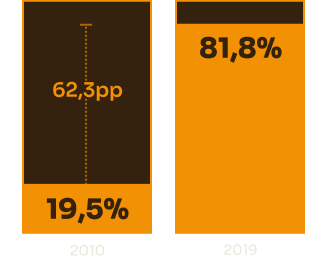 EscolaridadeApesar do aumento de 62,3 pontos percentuais entre 2010 e 2019, a declaração de cor-raça dos estudantes de graduação a distância permaneceu relativamente insuficiente para estudos sobre a questão racial.