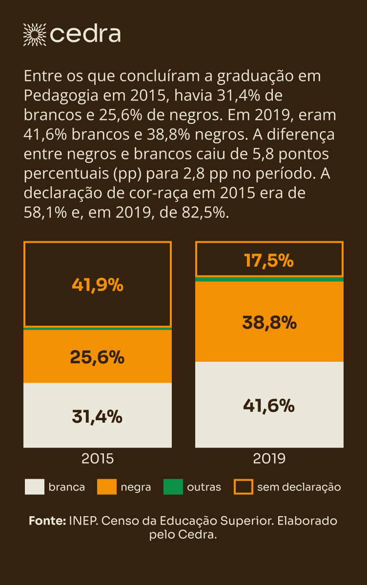 Para fins de análise, utilizamos os anos cuja declaração de cor-raça ultrapassou 50%. Essa escolha considera que os anos analisados apresentam mais declaração de cor-raça do que a ausência deste dado, permitindo melhores análises.